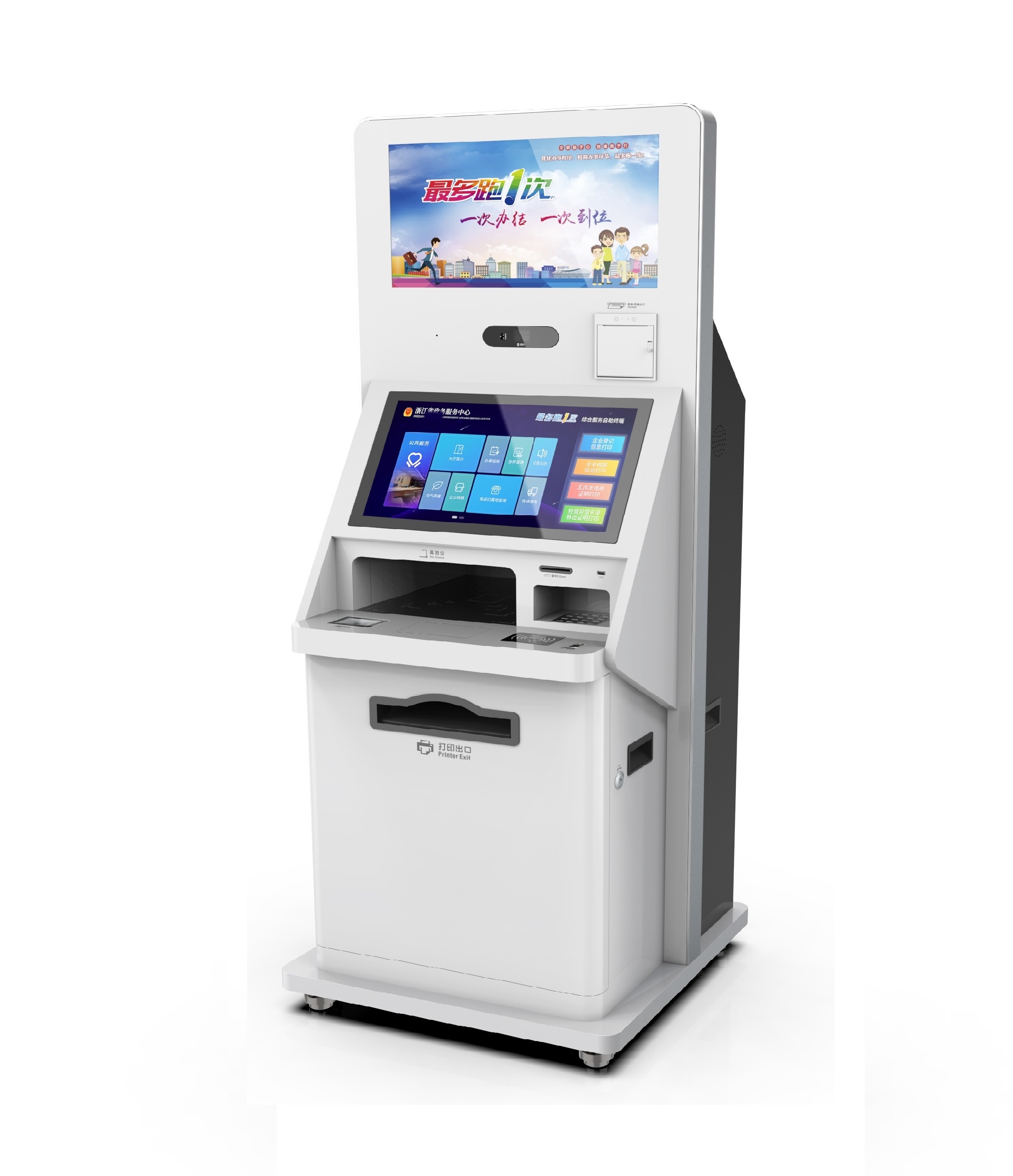 行政大厅通用款 排队机(自助服务终端),32寸电容式触摸屏,支持微信预约,一机多用,可作查询机、导览机,“以客户为中心”,支持定制。