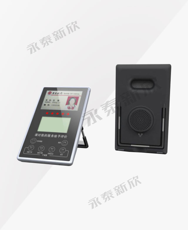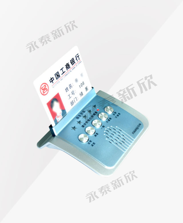 评价信息实时在线统计并自动生成报表,减少工作量 所有评价统计信息均可远程互联网查询,并设有多级查询 与叫号器连接,按评价键系统自动语音提示 限一次按键有效设置,避免客户评价信息重复 插入式柜员资料卡可显示服务工作人员的照片、工号、姓名及办理的业务等