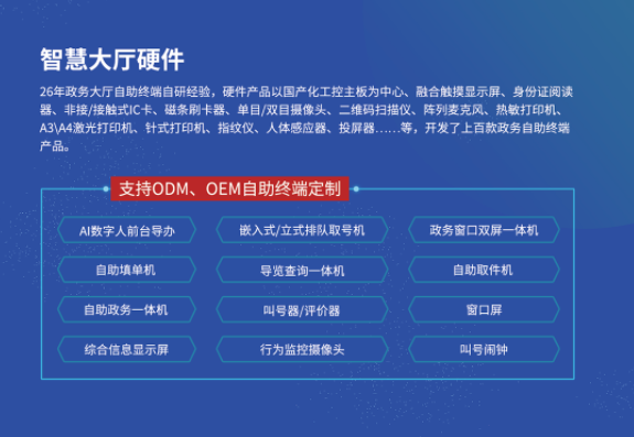 我司作为深耕智能终端设备与智慧政务解决方案领域的企业,此次展会将携智慧政务服务大厅一体化解决方案,软硬件专业设计与制造,AI数字人导办排队一体机、排队机、双屏政务窗口一体机核心产品亮相。