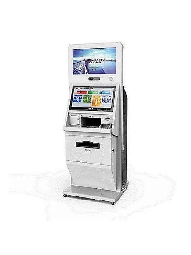 快盈vll政务服务自助终端YTP600A,采用金属钢板,金属烤漆结构,产品一体成型,落地式设计,外观时尚美观。主机显示屏采用19英寸电容式触摸屏,采用低功耗工控主板,内存4Gb,存储128Gb电子硬盘,搭配智能高拍仪、凭条打印机、三合一读卡器、摄像头、密码键盘、指纹仪、二维码扫描仪和激光打印机等外设,集自助填单,证件复印,排队取号、联网核查、业务预约等功能于一体,操作便捷,让业务办理智能化。支持win7/win8/win10操作系统,软件扩展功能非常强大。
